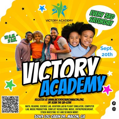 Register NOW for the Fall 2025 - Spring 2026 Victory Academy Academic Program! Sessions are held every 3rd Saturday from 10 a.m. - 2:00 p.m. Click the link to register, or scan the QR code. The first session is